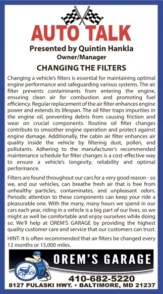 Sep 12, 2024. Orem's Garage Inc. Auto Services Ads from The Avenue News