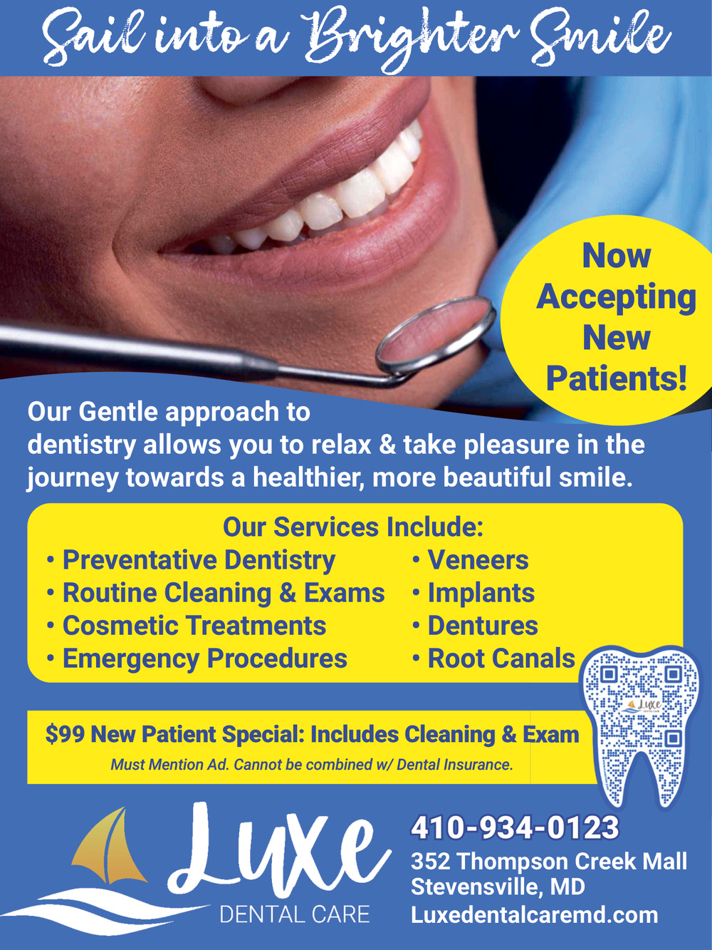 410-934-0123352 Thompson Creek MallStevensville, MD 21666(Luxe Dental Care)
