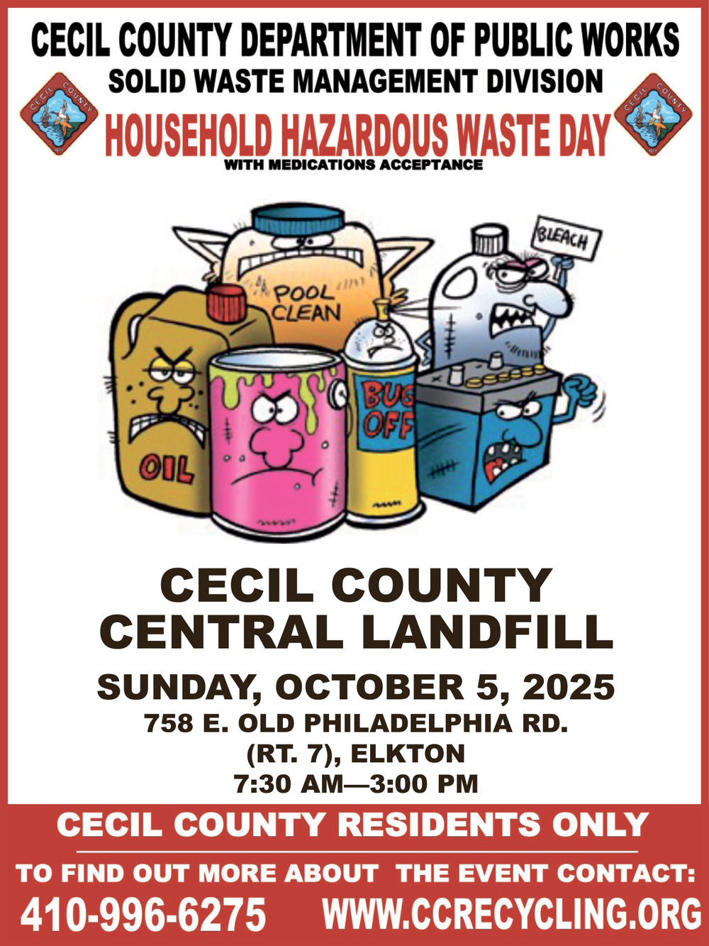 Oct 01, 2025. Cecil County Department of Public Works - Household Hazardous Waste Day Waste Management Ads from Cecil Whig