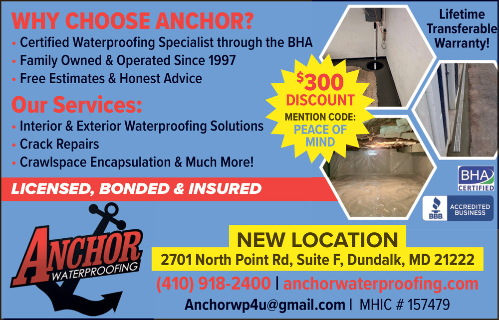 410-918-24002701 North Point Rd Suite FDundalk, MD 21222(Anchor Waterproofing)