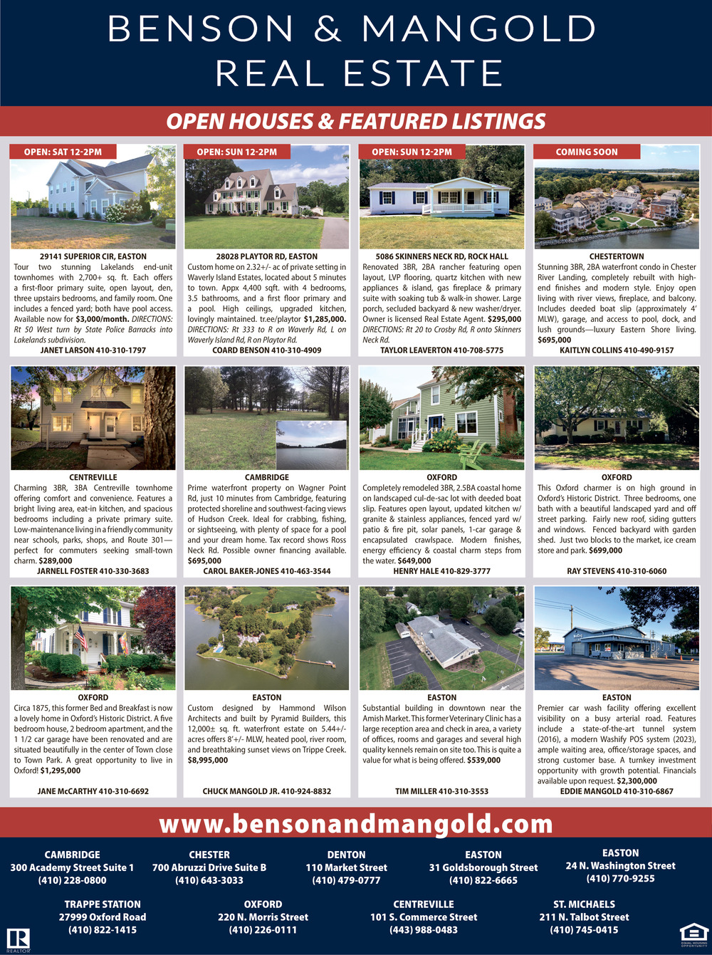 Oct 17, 2025. Benson & Mangold Real Estate Open Houses Ads from Star Democrat
