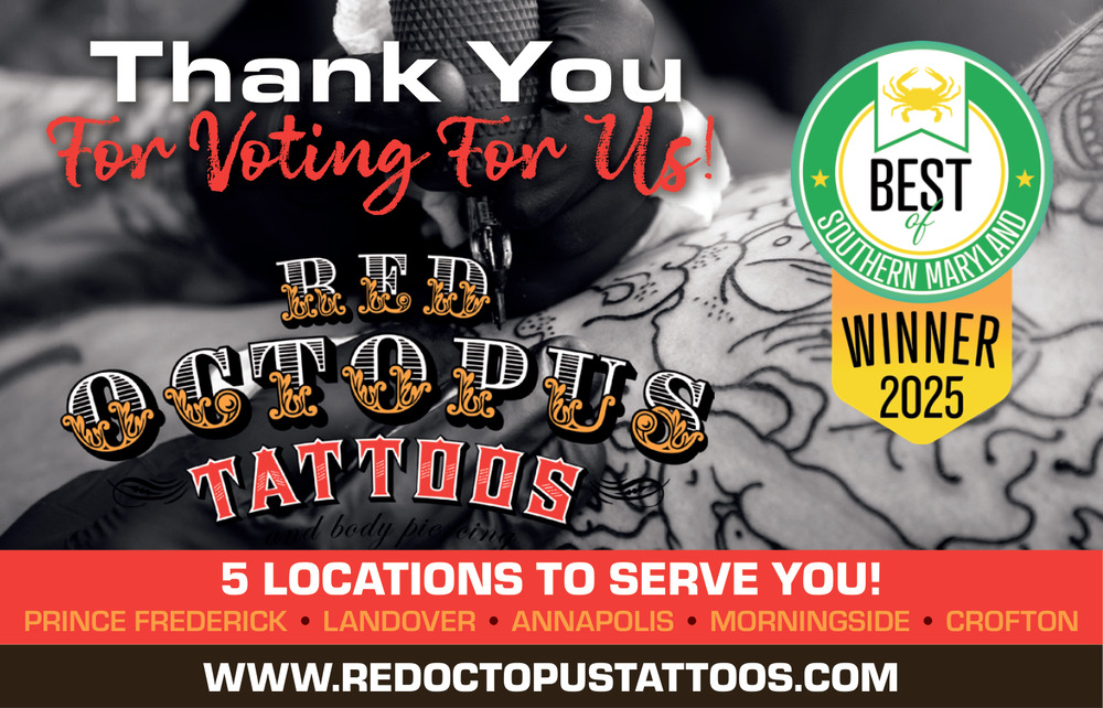 Oct 24, 2025. Red Octopus Tattoos Beauty Ads from Maryland Independent