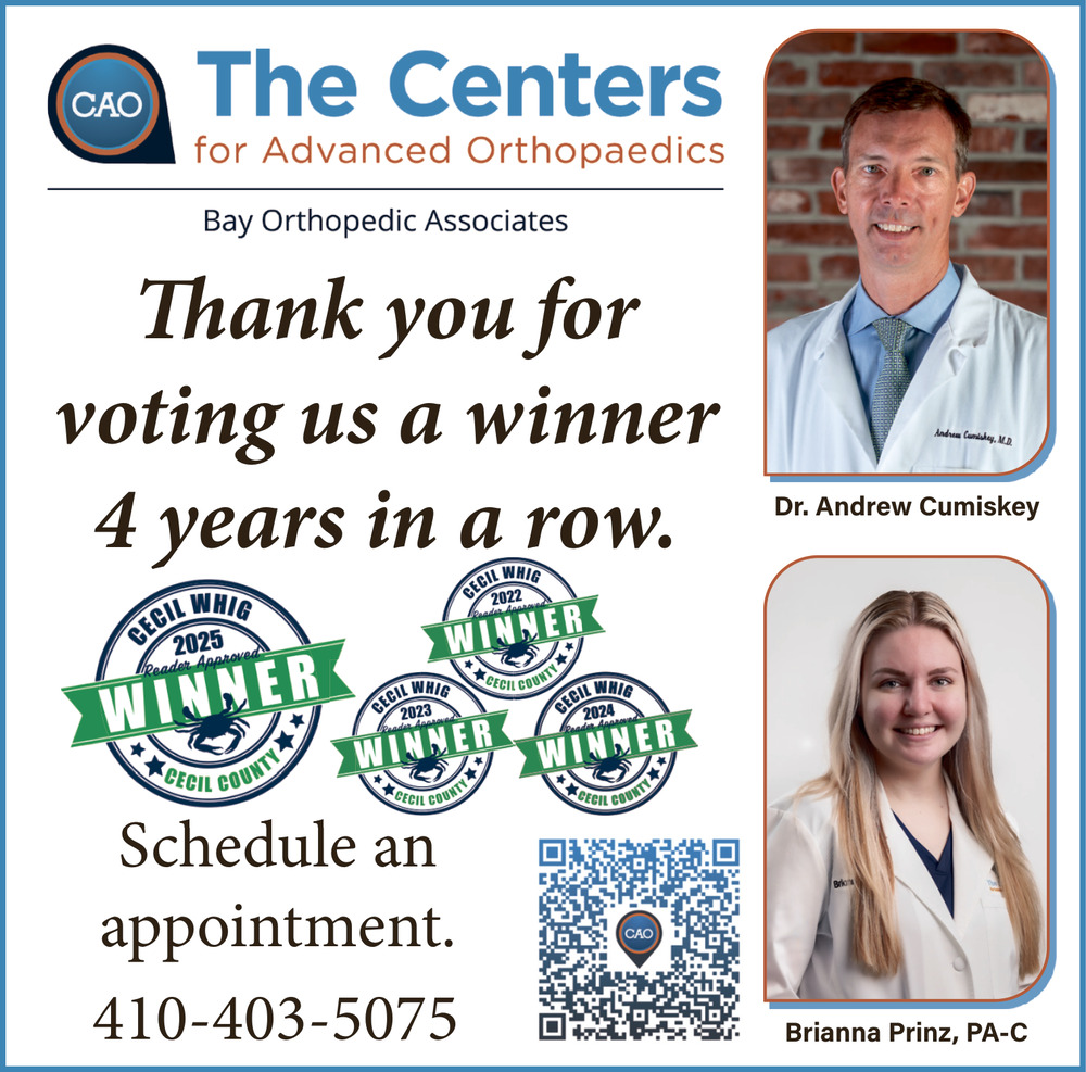Oct 29, 2025. The Centers for Advanced Orthopaedics Medical Ads from Cecil Whig