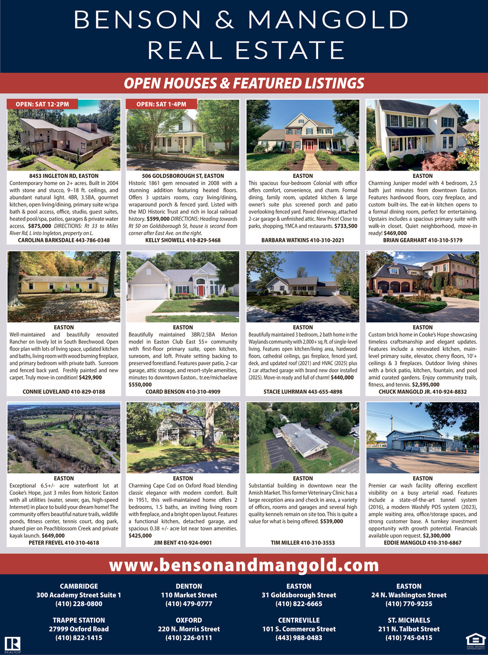 Nov 14, 2025. Benson & Mangold Real Estate Open Houses Ads from Star Democrat