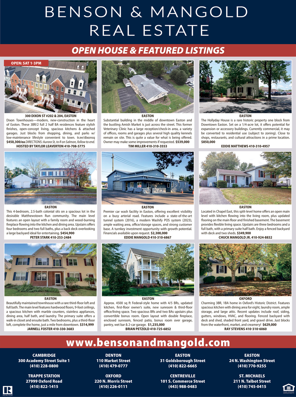 Dec 12, 2025. Benson & Mangold Real Estate Open Houses Ads from Star Democrat