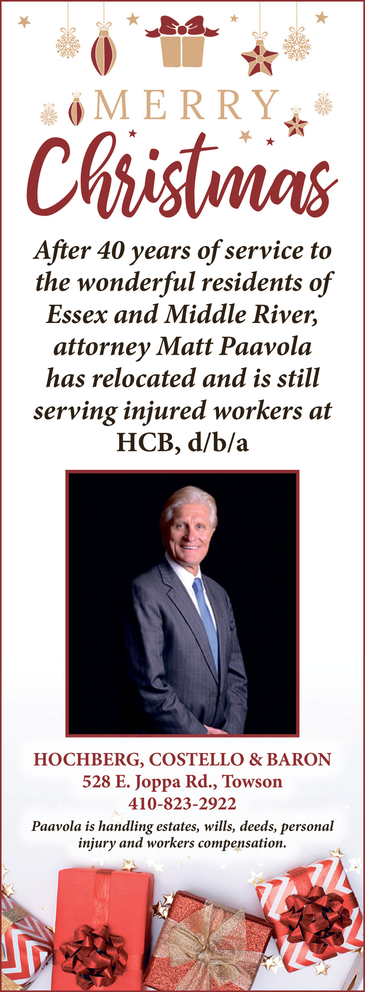 Ads for Hochberg, Costello & Baron in Towson, MD