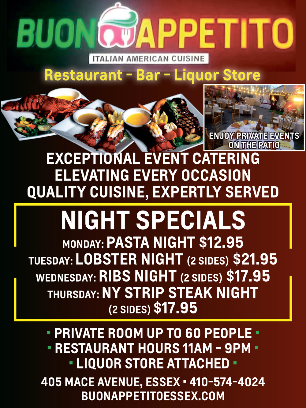 410-574-4024405 Mace AvenueEssex, MD 21221(Buon Appetito)