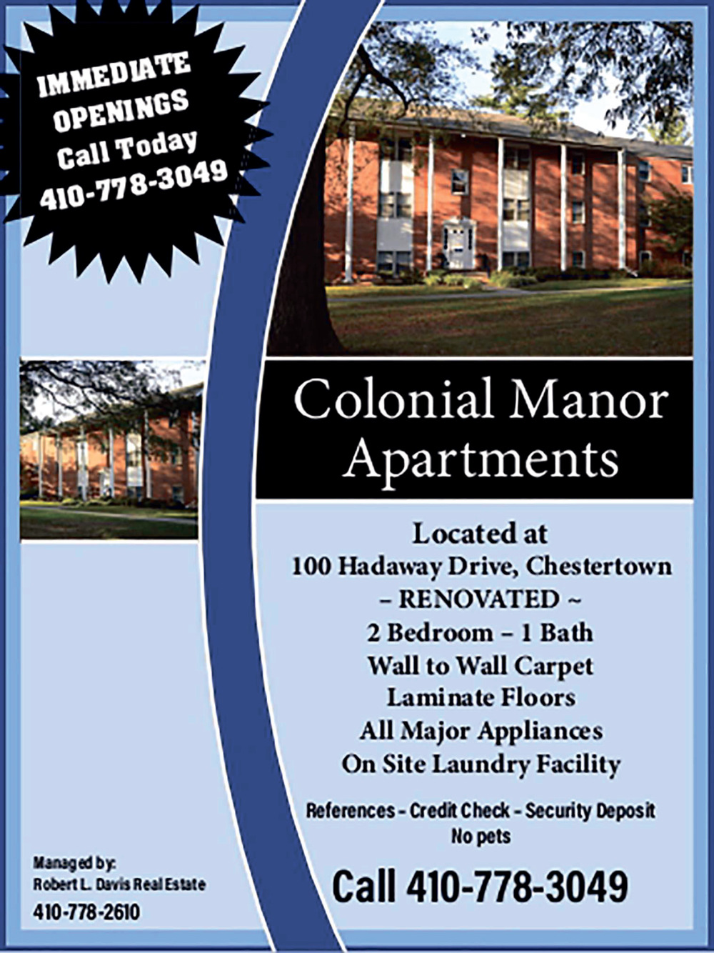 410-778-3049101 Morgnec Rd I100Chestertown, MD 21620(Colonial Manor Apartments)