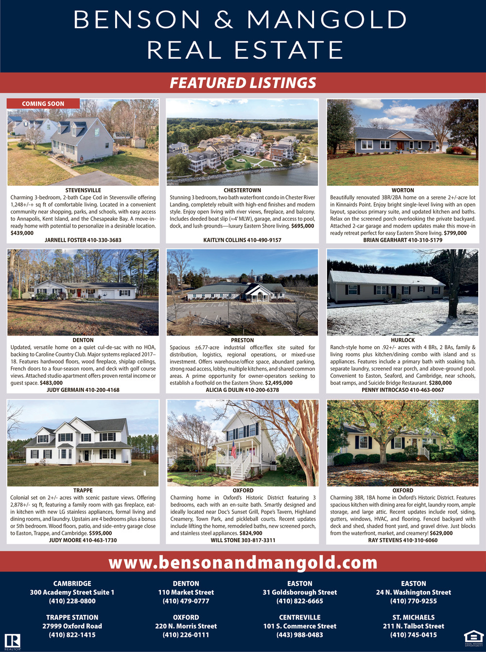 Ads for Benson & Mangold Real Estate in Chester, MD