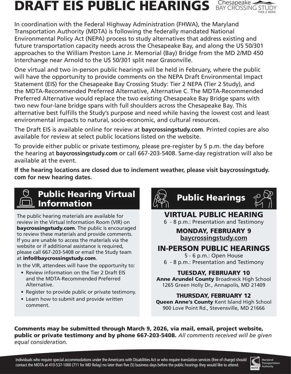 Jan 28, 2026. Chesapeake Bay Crossing Study Public Notice Ads from The Enquirer-Gazette