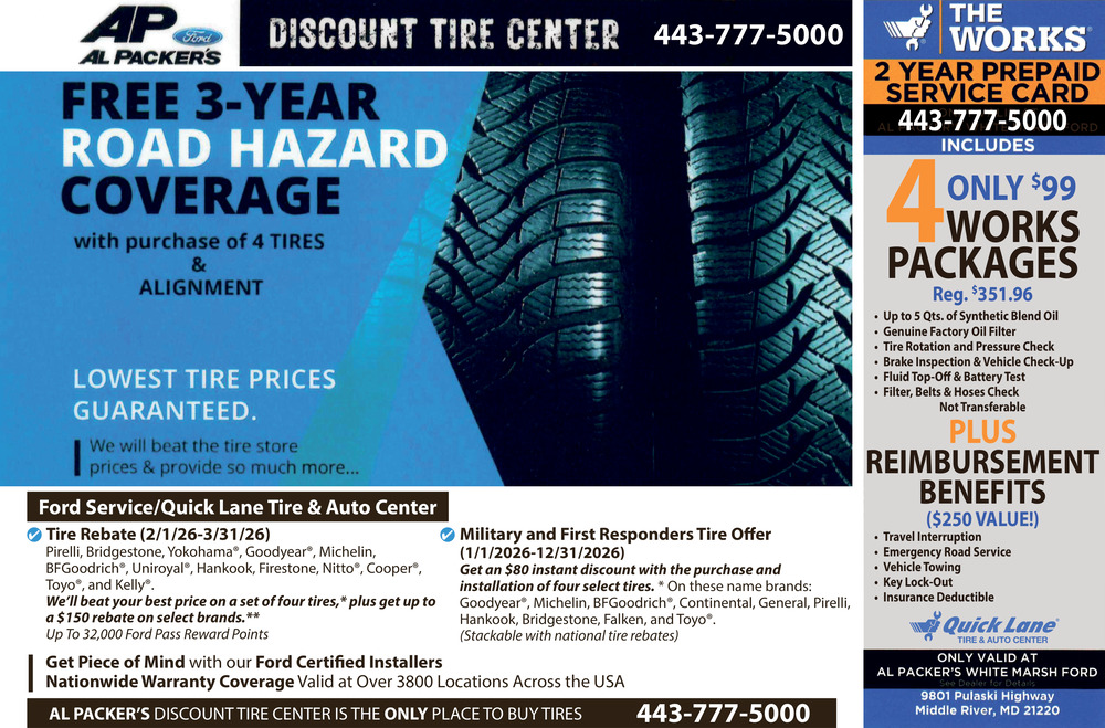 Feb 05, 2026. Al Packer's White Marsh Ford Auto Dealers Ads from The Avenue News