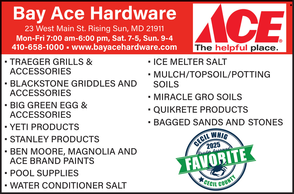 410-658-100023 W Main StColora, MD 21911(Bay Ace Hardware)