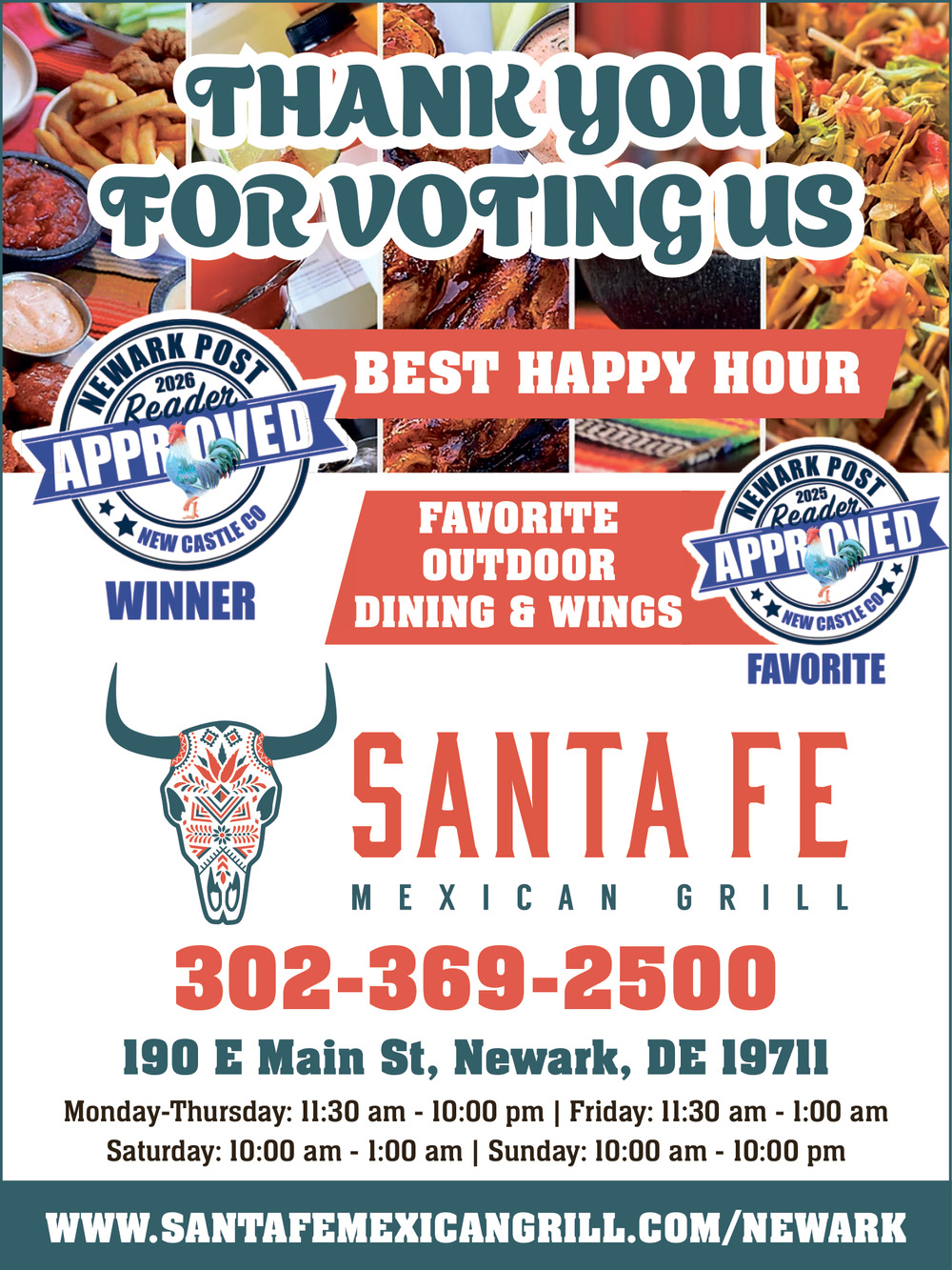 Ads for Santa Fe Mexican Grill in Newark, DE